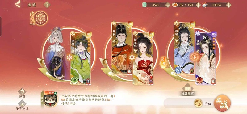 邓班天命邓绥能站住就行,班昭打输出,四星班昭基本上是完全体了,邓绥起到一个给对面附易伤的作用,无需星级,减益放出来之后放大给班昭叠伤害。
