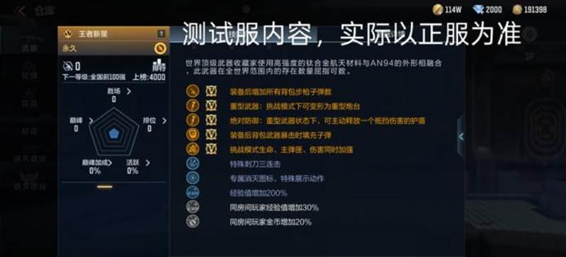 王者新星以鎏金锋芒重塑战场规则,不仅在视觉上诠释低调奢华,更以600发弹容、900点爆头伤害与5秒无敌护盾的“黄金三角”组合,成为挑战模式的终极杀器。