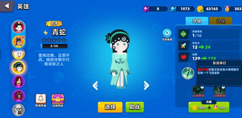 青蛇同样是五星级别的角色,但整体强度略逊于白蛇。作为史诗级别英雄,青蛇的技能组合偏向灵活,适合喜欢快速移动和精准打击的玩家。虽然等级上限同样为100级,但她的技能更注重控制与位移,能够在战斗中保持较高的生存能力。对于追求操作技巧的玩家来说,青蛇是一个不错的选择。
