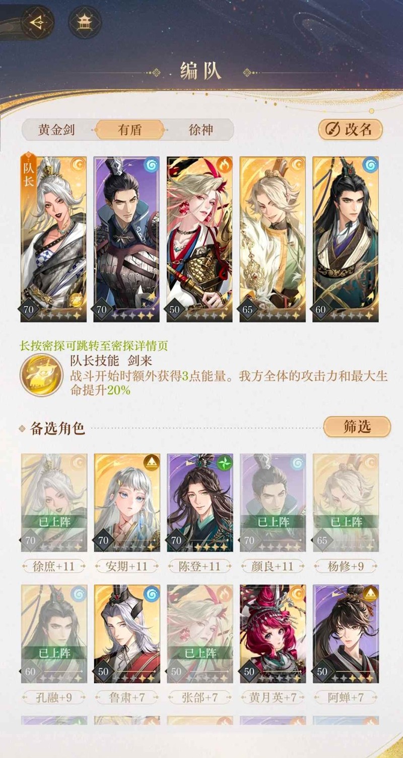 同等练度推荐徐庶队,不推荐安期,因为这关要控一下血,也不推荐陈登,容易死,作用低。
