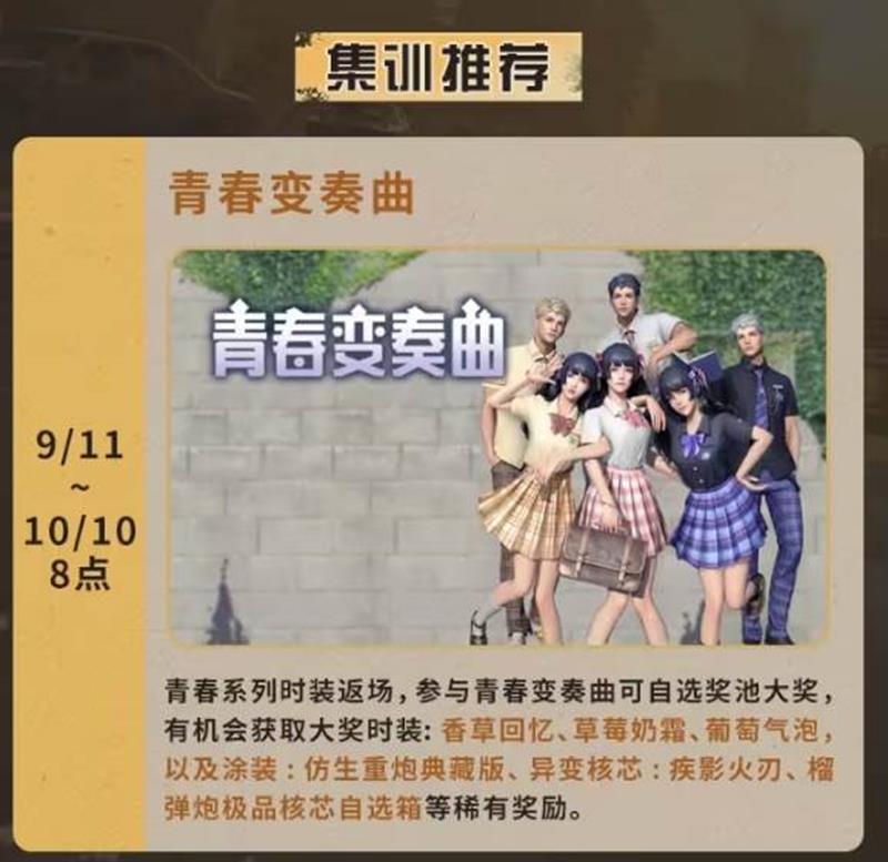 青春变奏曲(9月11日至10月10日)青春系列时装返场,参与活动有机会获得大奖时装。