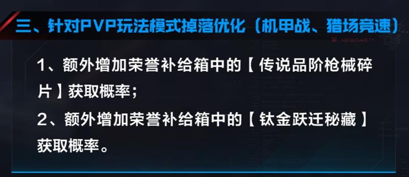 额外增加荣誉补给箱中的【传说品阶枪械碎片】获取概率;