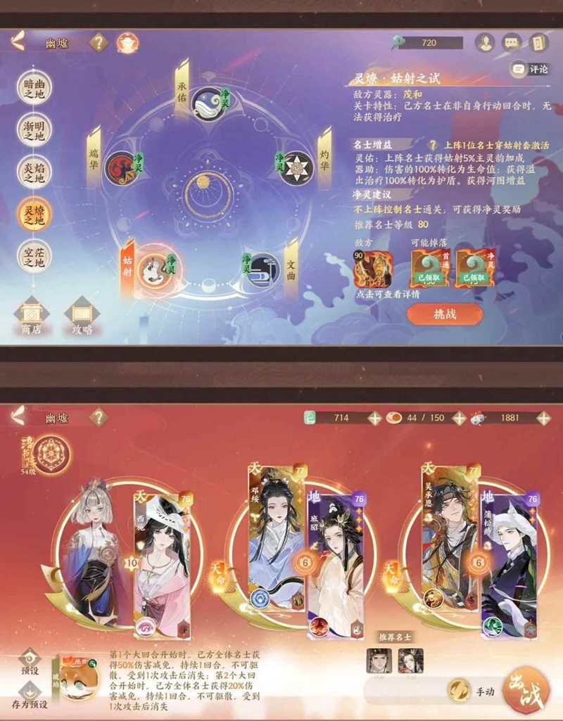 端华承佑关卡生防班邓总是被秒,凹了20次左右,提升了邓绥的星级+刷桃源居buff血量上限+免死又凹了十遍才过,全员能撑过2回合就可以过。