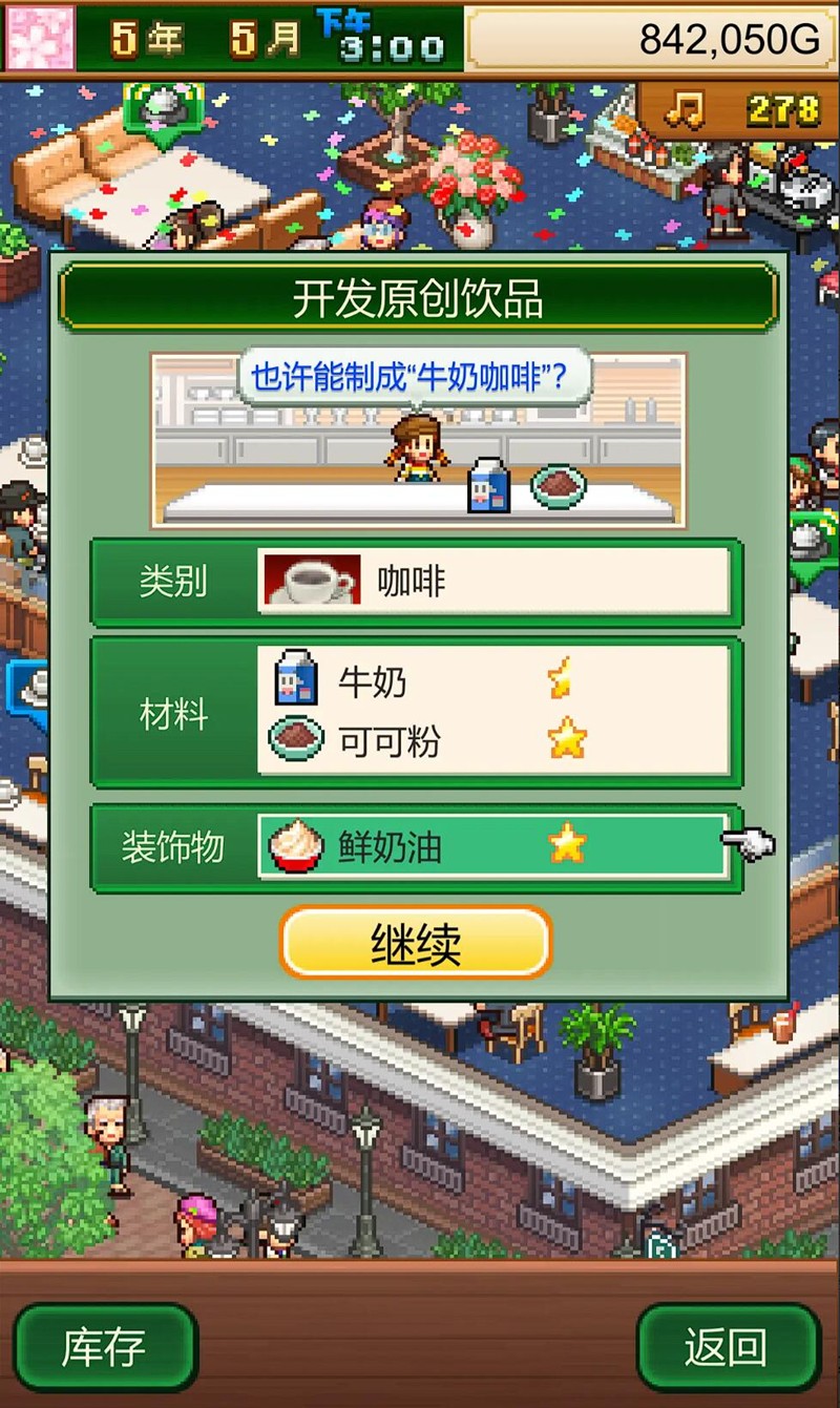 创意咖啡店物语延续了开罗系列一贯的像素画风,从装修到菜单设计都充满了独特的风格。玩家可以自由布置店铺,选择不同的家具和装饰品,打造属于自己的咖啡店。饮品研发系统也相当丰富,基础咖啡搭配各种食材可以解锁多种配方,提升顾客满意度。不过部分玩家反馈食材组合界面较为复杂,初次接触可能需要一定时间适应。
