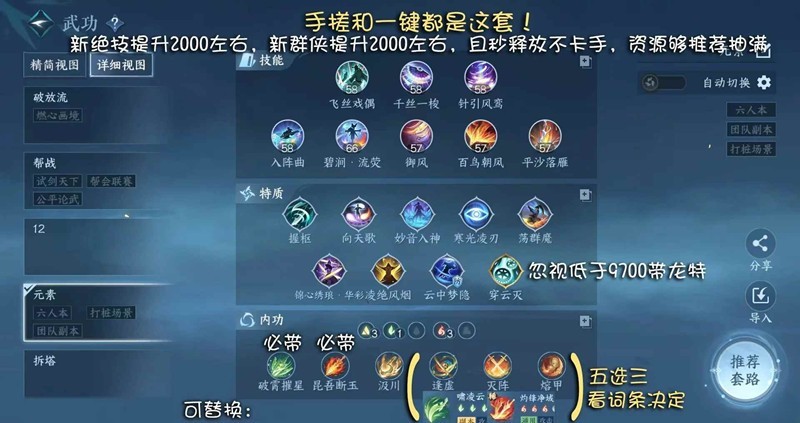 技能,特质,内功。照抄即可,因为换了老四独珍,大家的忽视都会下降一点,龙特的优先级又提升了