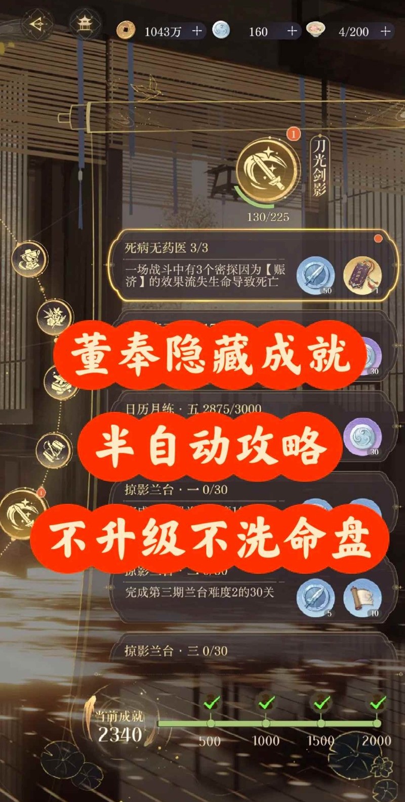 以上就是如鸢密探董奉隐藏成就半自动攻略-不升级不洗命盘版的全部内容了,更多游戏资讯,攻略内容敬请关注切游网,您的支持是我们努力的动力!