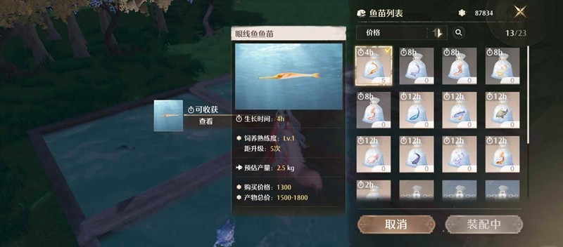 择优收获。切换养鱼能力然后和鱼塘互动,是可以看到当前鱼的重量的