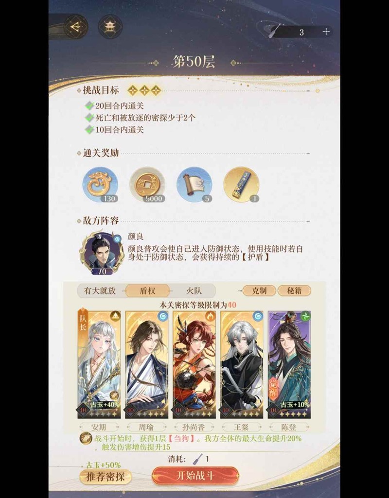 以上就是如鸢却扇歌地宫50颜良低练度,邪修三星过关攻略的全部内容了,更多游戏资讯,攻略内容敬请关注切游网,您的支持是我们努力的动力!