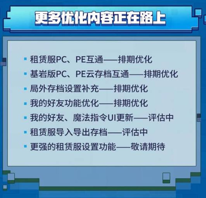 基岩版PC、PE云存档互通:排期优化,方便玩家在不同设备间同步游戏进度。