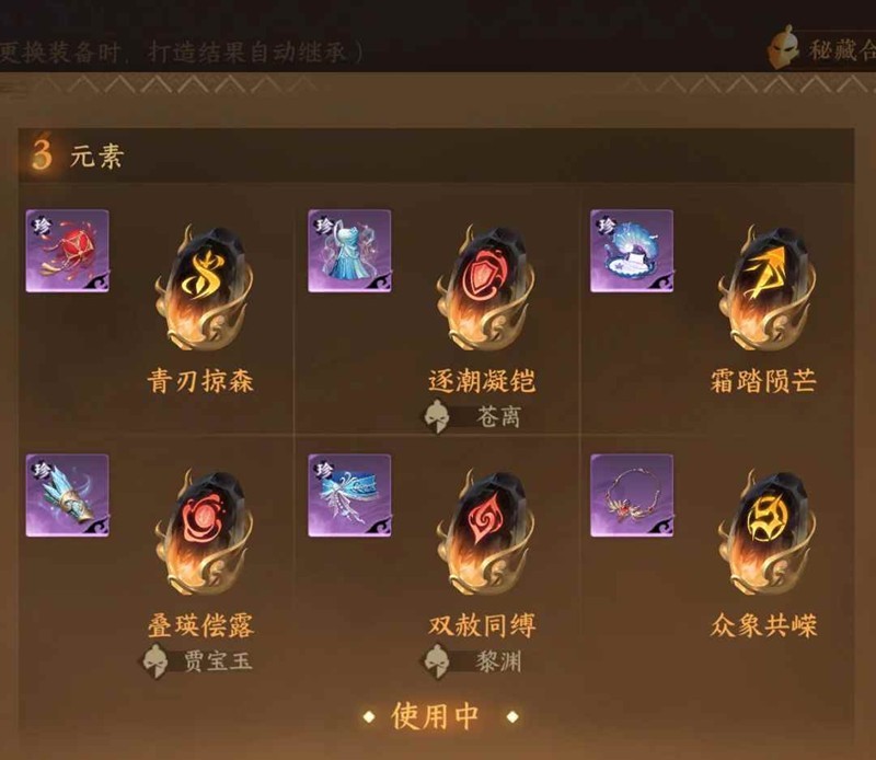 内功:灼烽/破戟和点明炉三选一看词条,3金3火1木 或 3木3火1金