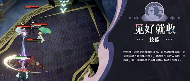“见好就收”是沙利叶的机动性技能,让他能够在战场上快速移动并造成范围伤害。前两次瞬移会优先选择敌人密集区域,后续则更注重空档区的利用。这个技能不仅提升了沙利叶的生存能力,还能让他在关键时刻打出高额伤害,为团队创造优势。