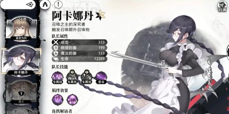 阿卡娜丹是召唤流的核心队长,她拥有特殊的羁绊能力,当队伍中有5个召唤职业角色时才能激活。这个设定让阿卡娜丹成为召唤阵容的首选领袖。同时,赫拉可以与阿卡娜丹形成技能联动,场上单位出场后能为全体队友提供攻击力加成,召唤物越多,增益效果越明显。此外,赫拉还能召唤三头犬,具备群体攻击能力,普通攻击还能提升召唤物的基础攻击力,最多叠加10层。