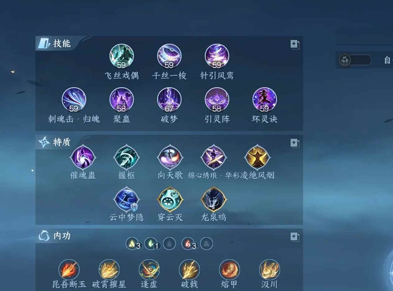 内功:破霄,熔甲,汲川,昆吾基本为必上的,其他看进攻词条上就好了。