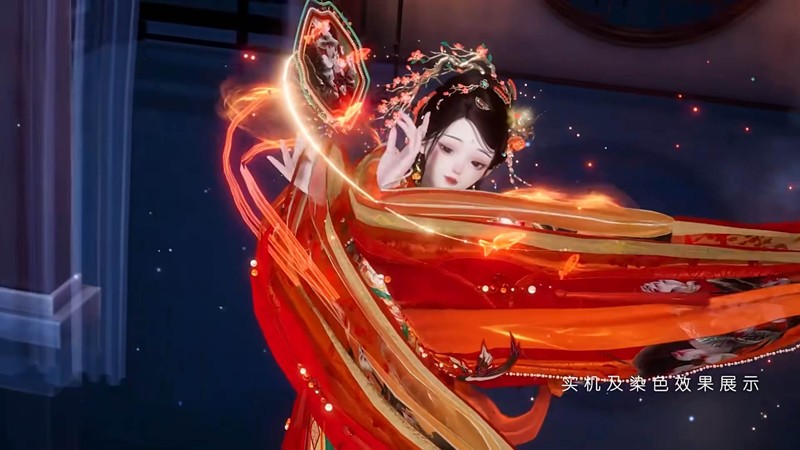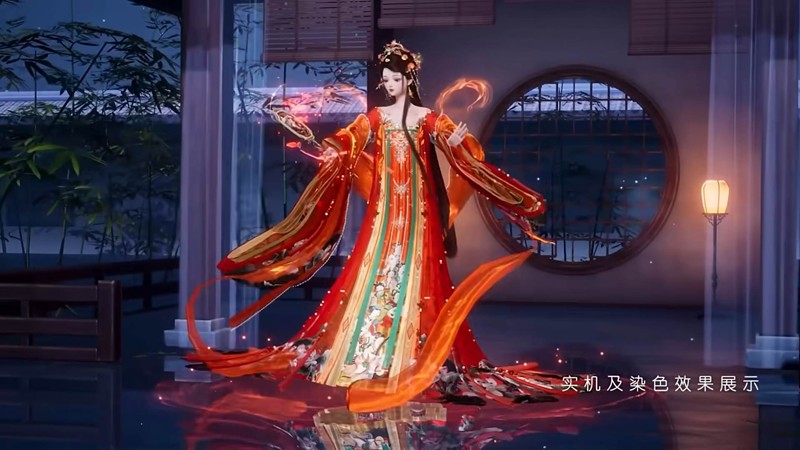 当价值高达【132万】的非遗蜀绣作品「荷花锦鲤」「蜀宫乐伎」缓缓展卷于裙身之上,当共逾【五十万】的细密针脚落缎而成尽现天香国韵,当【万水千山】皆缓缓流淌在丝绸之上,「骨骼动态物理技术」将荷花从水中生起涟漪的动态效果模拟还原,「刺绣alpha材质控制」让游鱼栩栩如生。