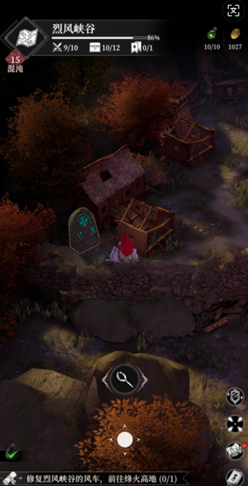 根据地图残页提示,前往右下角区域寻找墓碑。墓碑位于矮灌木丛旁,附近堆放着木箱,互动后选择搜索,可获得金币和基础材料。这些材料在后续修缮采石场时有重要作用。墓碑不远处即为塔楼,坐落在小高地之上,塔顶悬挂着一个破损的铃铛。进入塔楼后需操作机关进行解咒,该过程对角色魔力值有明确要求。若当前角色魔力不足,可调整阵容,上阵携带魔力加成装备的角色,或提前镶嵌提升魔力的宝石。成功解咒后,塔顶铃铛响起,一道淡蓝色光芒指向祭坛方向,为后续探索提供指引。