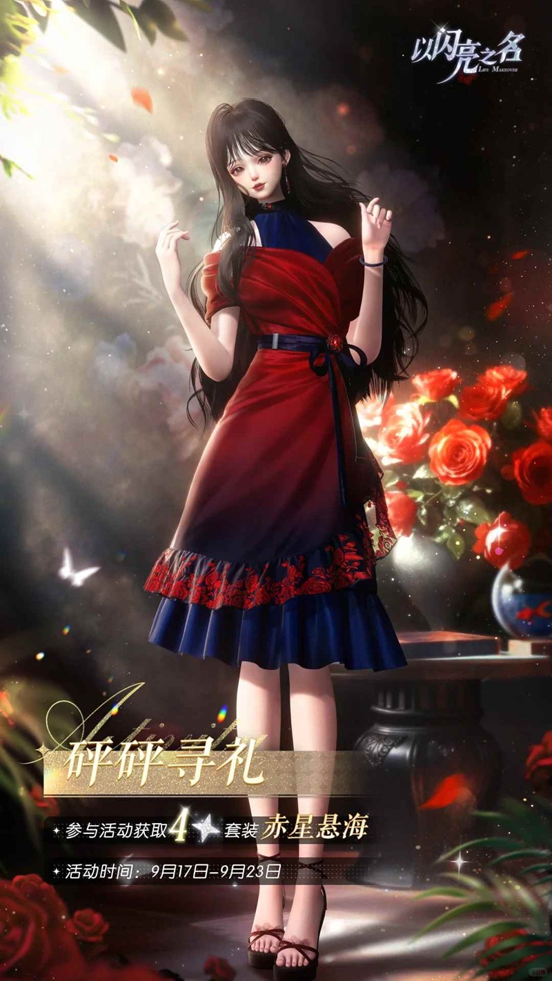 以闪亮之名砰砰寻礼活动今日开启,绣景分解商店限定兑换单品爆料公开~砰砰寻礼今日开启!累积砰砰积分,可以获取限定四星套装【赤星悬海】及多种材料道具!【追光·绣景分解】商店将于9月17日–10月8日同期限时开启,一起来和小编看看吧~