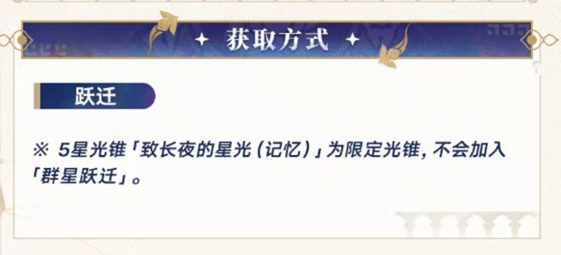 ※5星光锥「致长夜的星光(记忆)」为限定光锥,不会加入「群星跃迁」。