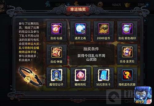 《乱斗西游2》超级联赛系列赛事从S1到S3的成功举行,离不开一众新老玩家的热烈支持,因此,《乱斗西游2》在超级联赛S4赛季期间特别推出幸运大抽奖活动——线上赛期间,比赛日参赛选手完成6场比赛、围观玩家观看3场比赛,非比赛日获得乱斗不周山奖励的玩家即可获得抽取魔悟空公仔、蟠桃抱枕、50元京东卡等丰富壕礼的机会。
