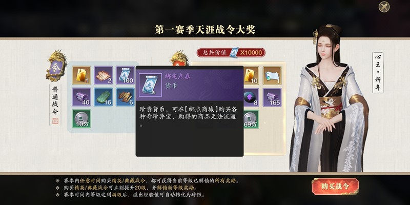 战令系统也是绑定点券的重要来源之一。在赛季期间,玩家通过完成挑战任务提升活跃度,进而解锁战令奖励。普通战令达到指定等级后可领取100绑点,而精英或典藏战令则可获得高达500绑点。战令任务涵盖PVE、PVP及生活技能等多个方面,适合不同玩法偏好的玩家参与。