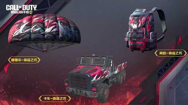 当敌人被命运之爪扼住咽喉,胜利的希望就已经彻底破灭!本次活动还有降落伞-命运之爪、卡车-命运之爪、背包-命运之爪等奖励,它们也将与战士们共赴战场,披荆斩棘。
