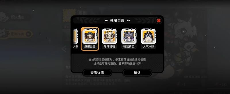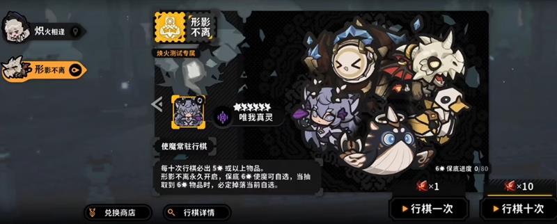 每进行十次行棋,必定能获得一件五星或更高品质的物品。形影不离是游戏中永久开放的卡池,这个卡池为玩家提供了保底机制,并且允许玩家自选心仪的使魔。当抽到六星物品时,系统会直接给予玩家当前选择的使魔。