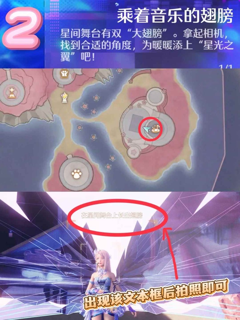 在星海新增区域,需要站在舞台离翅膀稍远一点的地方照片,为暖暖添上星光之翼