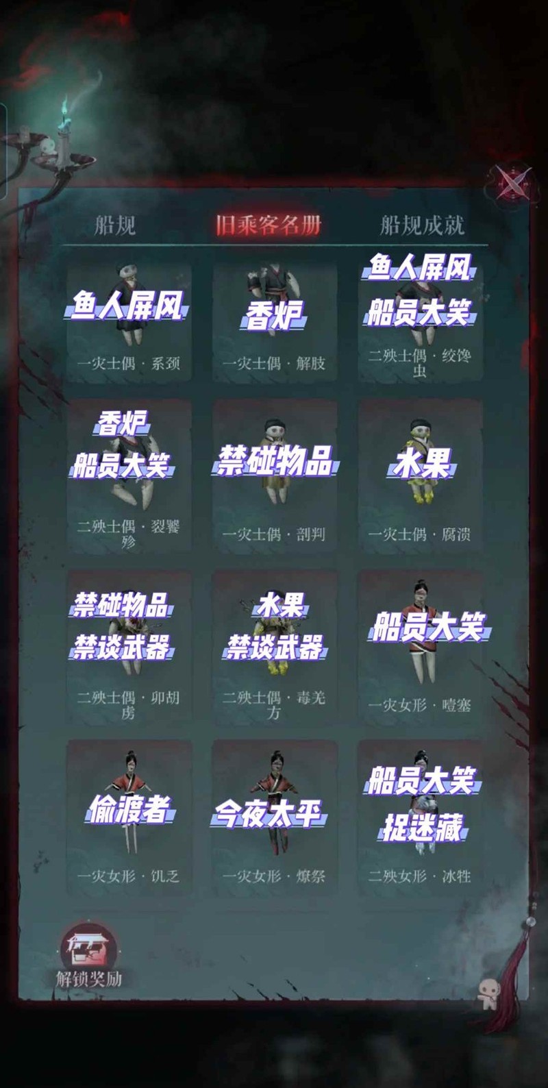 根据自己缺少的情况选择船规,对成就/人偶进行补充