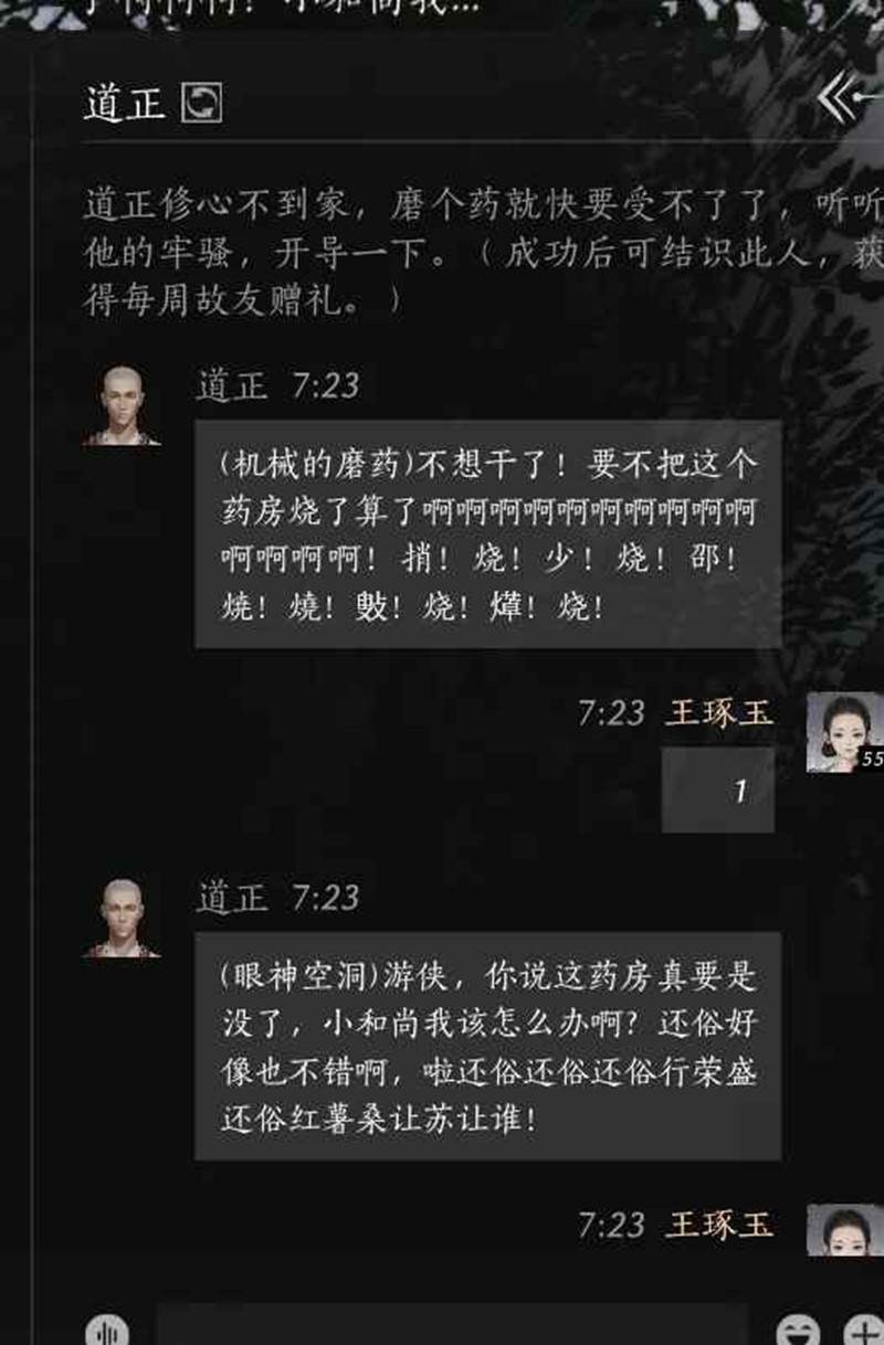 提及对话关键词、围绕关键词发消息/赠礼即可满好感成为江湖故人