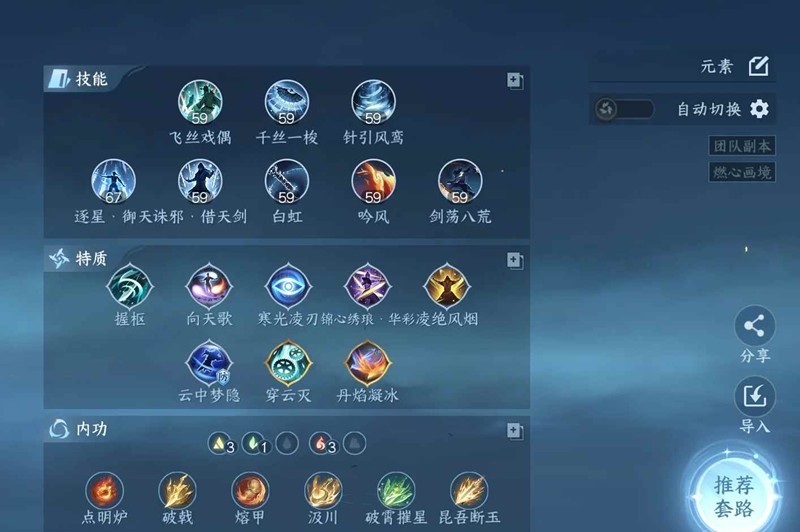 内功:破霄,熔甲,汲川,昆吾基本为必上的,其他看进攻词条上就好了(破戟,逢虚,坠虚烬,灼锋,点名炉可算5.6-5.8这样)
