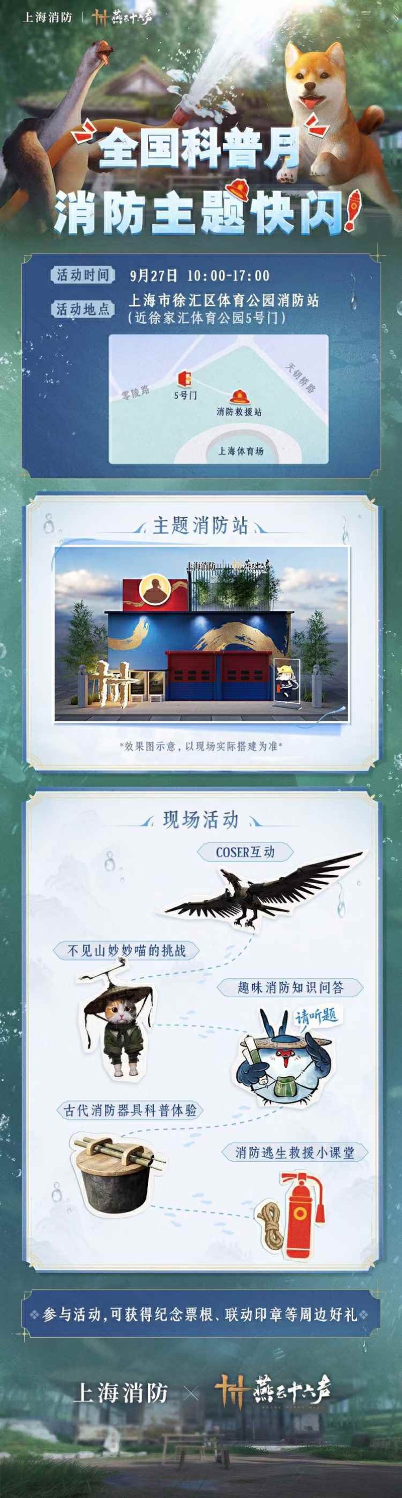 墨者以机巧之能,造利工之器具,救危民于水火。九转水磨,驱水灌溉;水则鱼碑,预洪防涝。新篇上线,恰逢9月全国科普月,我们携手上海消防,将于9月27日(下周六)在上海市徐汇区体育公园消防站,开展消防主题快闪活动,参与活动可得纪念票根、联动印章等周边好礼,期待与各位游侠见面!