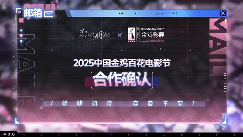 《恋与制作人》还将与中国金鸡百花电影节进行合作。金鸡影展是中国电影界的重要活动之一,此次合作将为玩家带来电影与游戏的跨界体验,让玩家在享受游戏的同时,也能感受到电影的魅力。