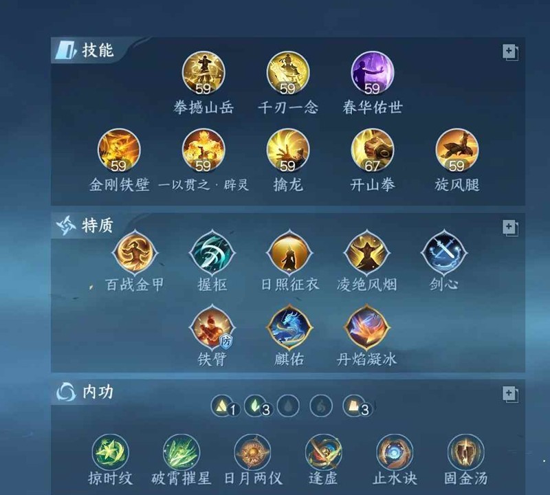 铁臂+百战+握枢+日照+凌绝风烟+剑心