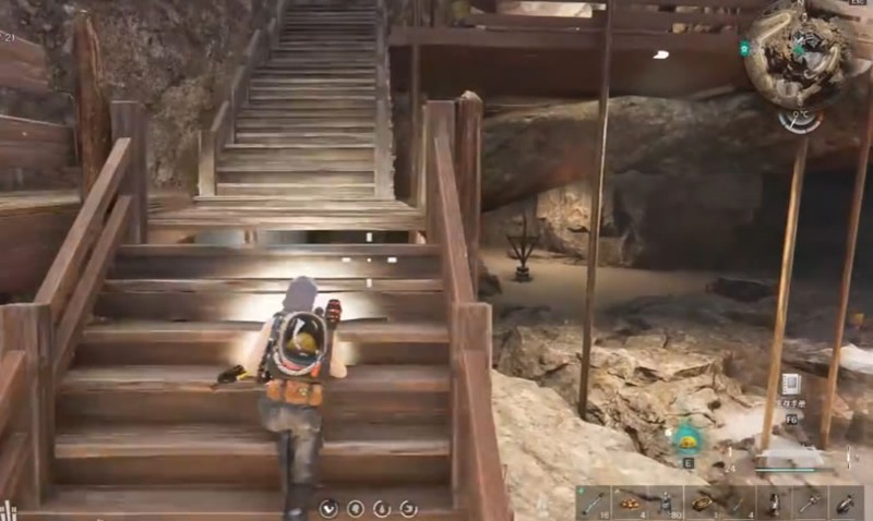 矿坑区域的左侧设有一个武器箱,这是进入后第一个可开启的宝箱,位置较为明显。继续向前,前方会出现一座木屋结构建筑,靠近后向右转并登上木梯。此处的楼梯路径看似复杂,实则路线固定。在爬升至第二个平台时需注意,不要继续直行上楼,而是应在此处左转回头走另一条连接通道。