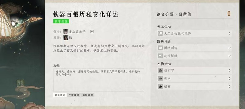 墨山道的门规严谨而独特,强调“格物致知,实践强宗”。弟子们每日需完成三件要事——研究,研究,还是研究。在墨门,再高深的武艺都不如一张精妙的蓝图,科研成果需以实验数据为凭,写为【百工论文】发布。