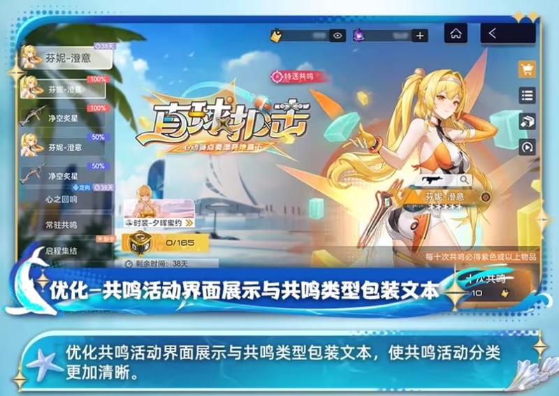 优化-角色养成体验:定向共鸣选定角色后,限时活动商店将增加该角色的活动武器和后勤兑换,提升角色养成的效率。
