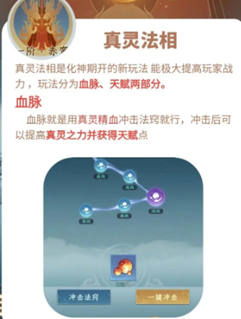 真灵法相的核心在于血脉与天赋两大模块。玩家通过使用真灵精血冲击法窍,成功后可获得天赋点,用于激活或升级各类增益效果。每一次冲击都直接关联角色实力的提升,尤其在中后期,天赋点的积累将决定战斗表现的强弱。因此,在问剑长生中,合理分配资源以持续提升血脉等级,是保持战力领先的关键步骤。