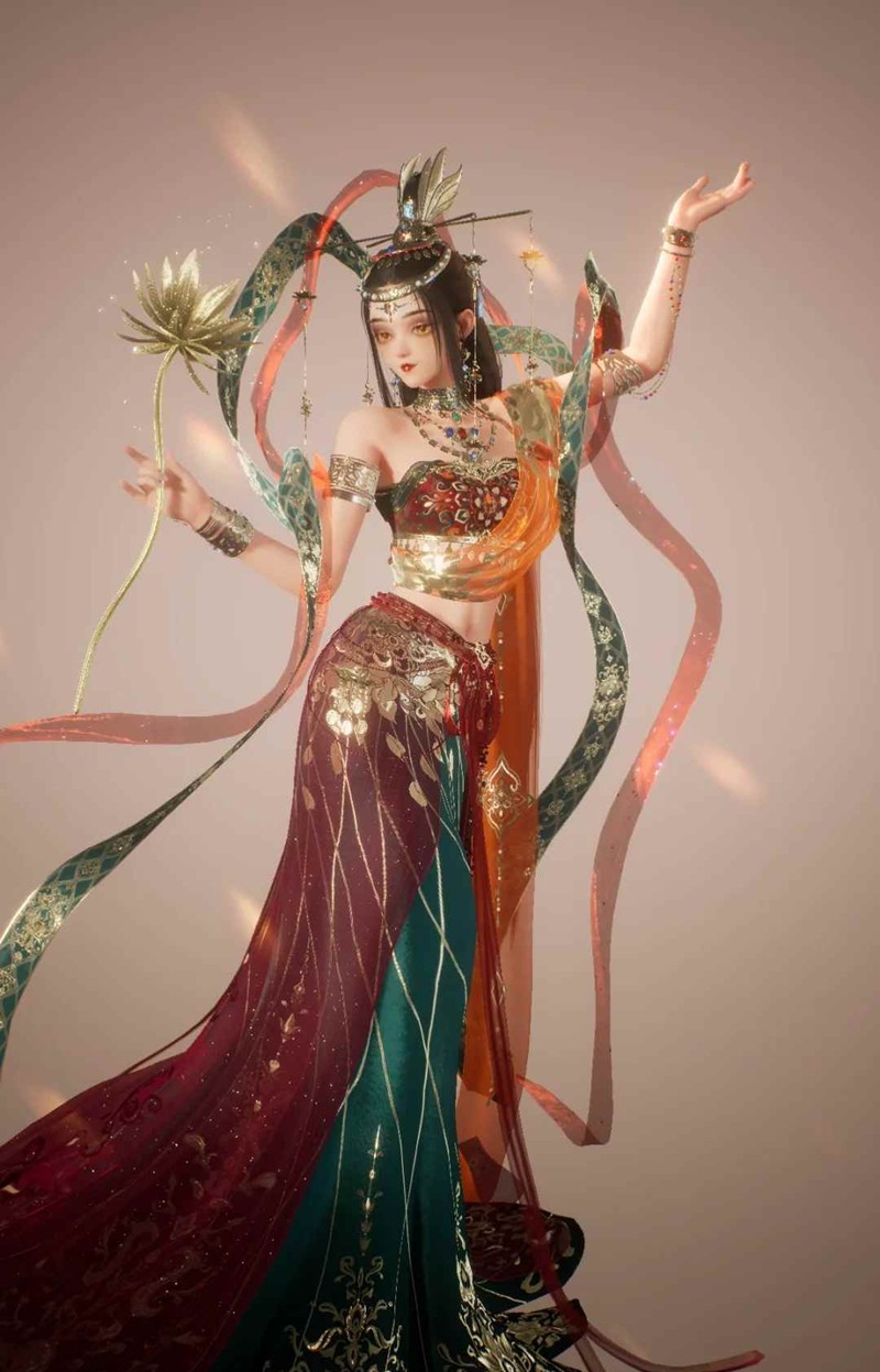 裙袂九转金莲,步步生花,万般人间色,皆在我身
