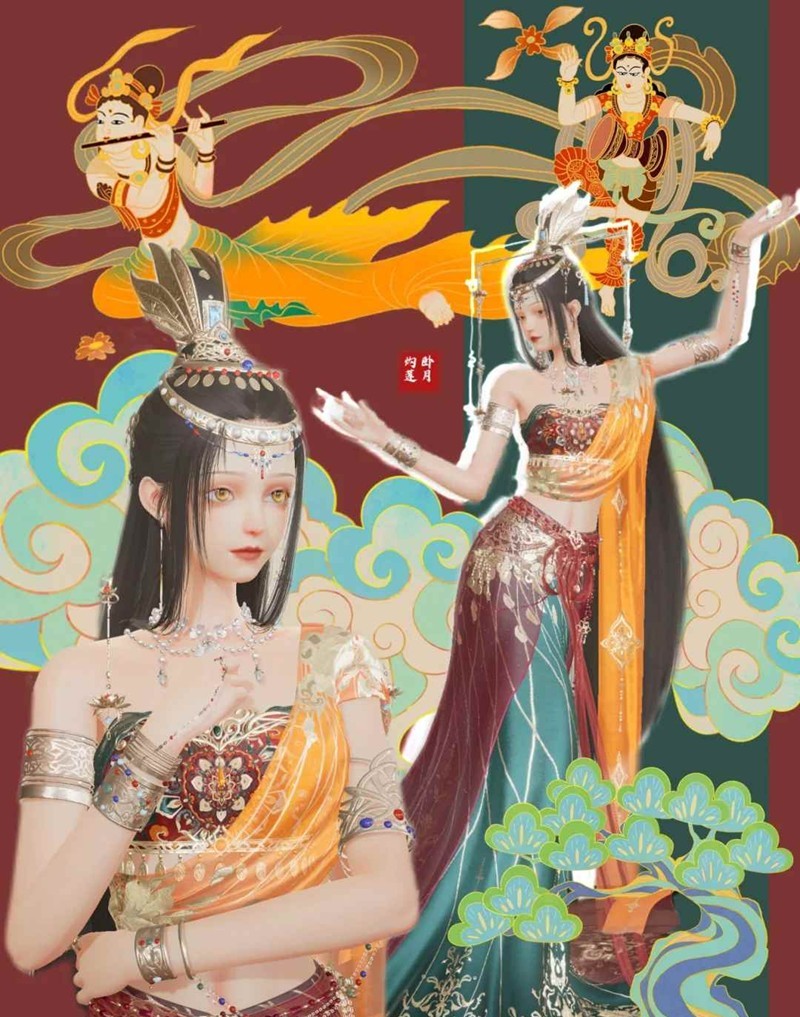 取大漠绿洲为底色,狂沙曜日,烈火灼莲,撷月泉彩霞为披帛