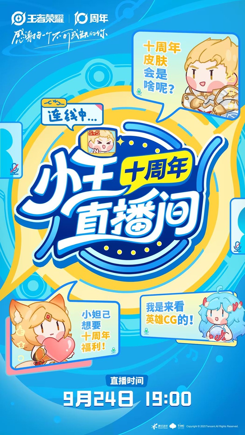 王者荣耀十周年特别节目将于9月24日19:00在小王直播间准时开启,切游网会密切关注,为您带来最新内容。敬请期待。