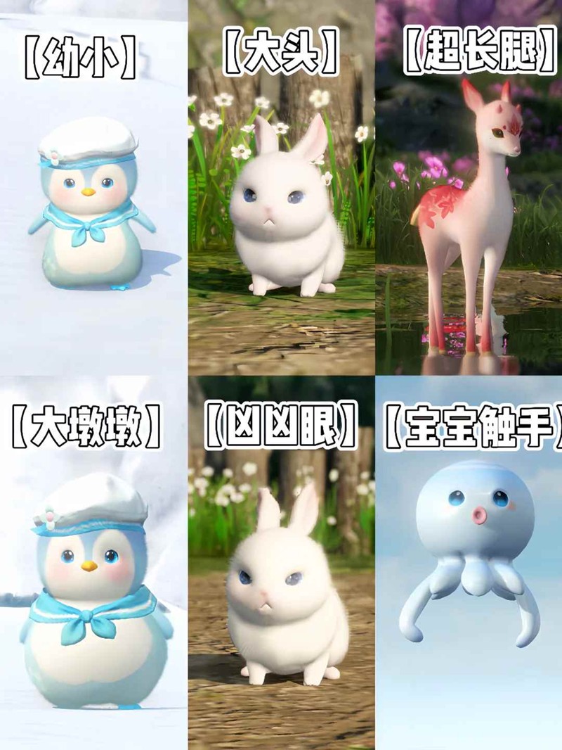 本次更新为小企鹅、小鹿、小兔、八爪鱼这四种宠物新增了两大类可在外捕捉的变异因子: