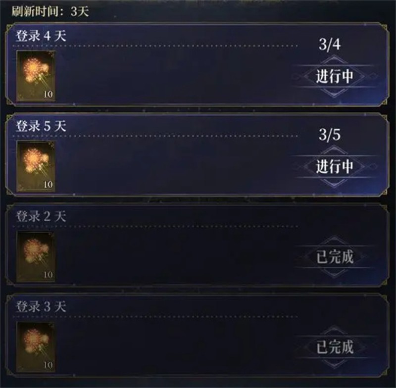 在不朽箴言中,每周轮换活动提供的三种常驻道具主要来源于日常任务、周常任务以及当周限时活动。每日可通过日常获取1个道具,每周7天累计7个;周常任务固定提供3个,持续三周共9个;当周活动基础奖励6个,加上签到类活动可获得40个。以此计算,前三周每轮某一类道具的基础获取量为76个。首次参与的玩家在第一轮结束后可获得排名返还奖励,前1000名额外返还9个,总计可达85个道具。
