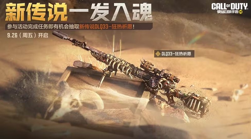 9月26日(本周五),新传说武器DLQ33-狂热祈愿来袭。战士们参与活动,可以抢先体验该武器,同时参与活动完成任务即有机会抽取新传说武器DLQ33-狂热祈愿。