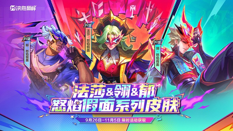 2025年9月29日10:00-11月5日23:59内容:全新皮肤「法莎-怒焰假面」限时登场,首次十连必得随机怒焰假面奖励。