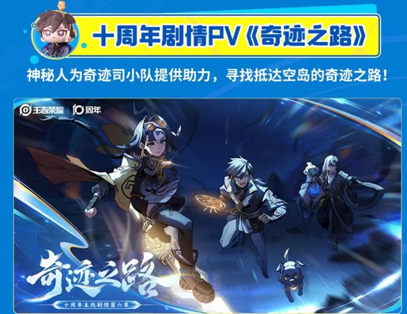 十周年剧情PV《奇迹之路》也正式亮相,神秘人为奇迹司小队提供助力,寻找抵达空岛的奇迹之路。