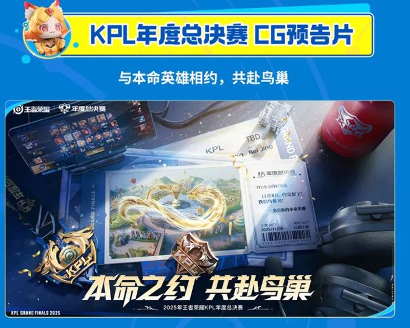 与本命英雄相约,共赴鸟巢。KPL年度总决赛CG预告片不仅展示了游戏的电竞魅力,也为玩家带来了更多的电竞期待。