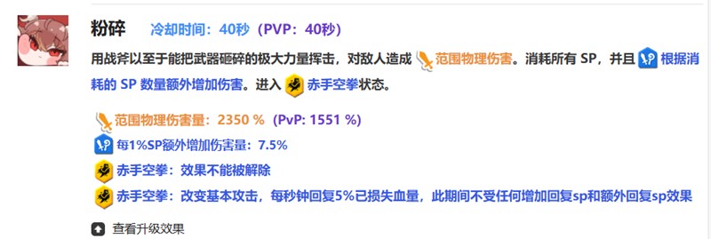 粉碎是黛安娜往昔形态的核心爆发技能,需消耗全部技能点释放,伤害数值与已积累的技能点数直接挂钩。该技能可对单体或小范围敌人造成巨额物理伤害,适合在技能点充盈时作为终结技使用。由于其高爆发特性,常被用于收割残血目标或突破敌方关键单位,是物理流黛安娜的核心输出手段之一。