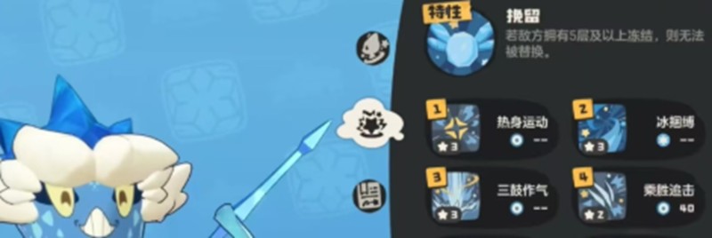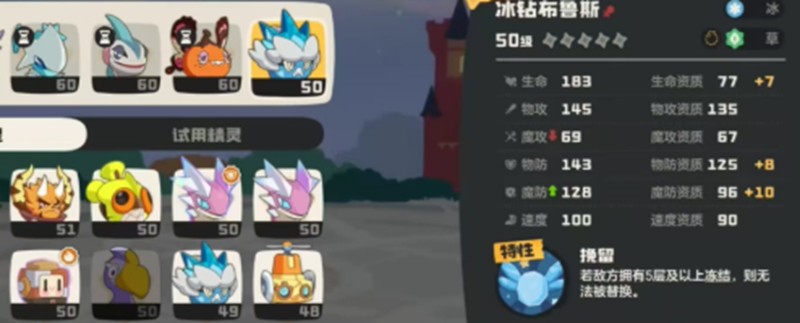 这是冰钻布鲁斯的核心特性,也是它能在战场上站稳脚跟的关键。当敌方单位身上的冻结层数达到5层或以上时,对方将无法被替换下场,这一机制极大地限制了对手的战术调度。配合拥有挂冰能力的队友,比如能频繁施加冰冻效果的辅助型精灵,可以让敌方陷入无法轮换的困境。在持久战或面对多段换人策略的对手时,挽留特性的战略价值尤为明显,为队伍争取到足够的输出窗口。
