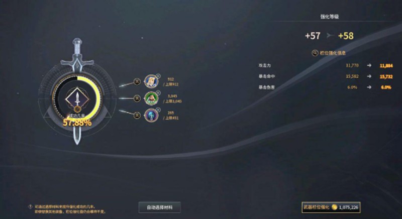 装备强化是零度曙光中提升战力最直接的方式之一。武器强化能显著提高角色的攻击力,例如从57级强化至58级后,基础攻击可从11,770提升至11,884,同时暴击率也会随之增长。每次强化需消耗金币与特定材料,建议优先保证高成功率操作,避免资源浪费。值得注意的是,即便强化失败,已有的强化数值不会下降,系统机制相对友好,让玩家可以更安心地进行升级尝试。