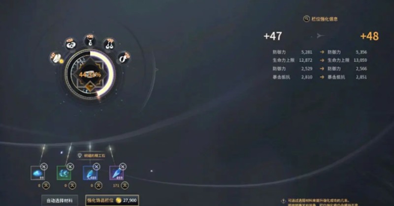 防具的强化同样不可忽视,虽然所需材料获取难度较高,但带来的防御力和生命值加成非常可观。推荐玩家在确保100%成功率的情况下再进行强化操作,以减少资源损耗。相比之下,饰品栏的强化成本较低,金币消耗约在两万左右即可完成一次升级,成功率维持在40%到60%区间便可尝试。从47级升至48级时,角色的生命上限与防御属性都会得到小幅提升,整体性价比出色,适合日常积累推进。