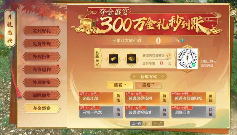 而在凤凰服,百万金礼将升级为夺金盛宴,金额足足翻三倍!首月将发放价值300万人民币的“金条”!让每一位同门在体验游戏乐趣的同时还能赚点零花钱。
